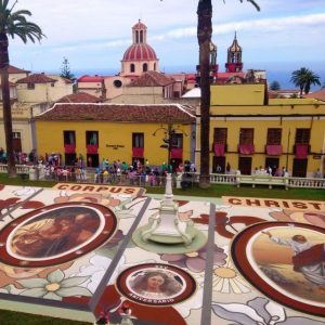 Eind mei, begin juni viert men in Las Palmas ‘Corpus Christi‘. De straten van de oude stad zijn versierd met bloemen en de Plaza de Santa Ana is een tapijt van bloemstukken.